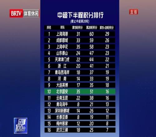 节目中连线了两名前北京国安球员徐亮和南方,两人分别谈了自己对球队的看法。徐亮认为即便是夺半程冠军的时候他就已经认为这支北京国安不具备夺冠实力,而对于下半程球队的战绩,他指出球队面对中超争冠球队都输了,面对4支保级球队已经输给了2队,还剩2队最后2轮还没踢,这样的话想取得好成绩就难了。