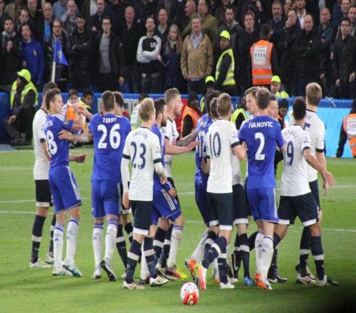 比赛过程中,热刺共有9人染黄,切尔西有3人染黄,而双方在球场上的犯规可以说是难以计数,最后时刻双方的大规模冲突,至今仍然是伦敦德比中最激烈的画面。值得一提的是,这场比赛切尔西主帅希丁克还被打倒在地,热刺球员丹尼·罗斯还和切尔西球员威廉多次顶牛。